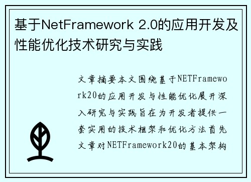 基于NetFramework 2.0的应用开发及性能优化技术研究与实践