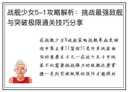 战舰少女5-1攻略解析:挑战最强敌舰与突破极限通关技巧分享